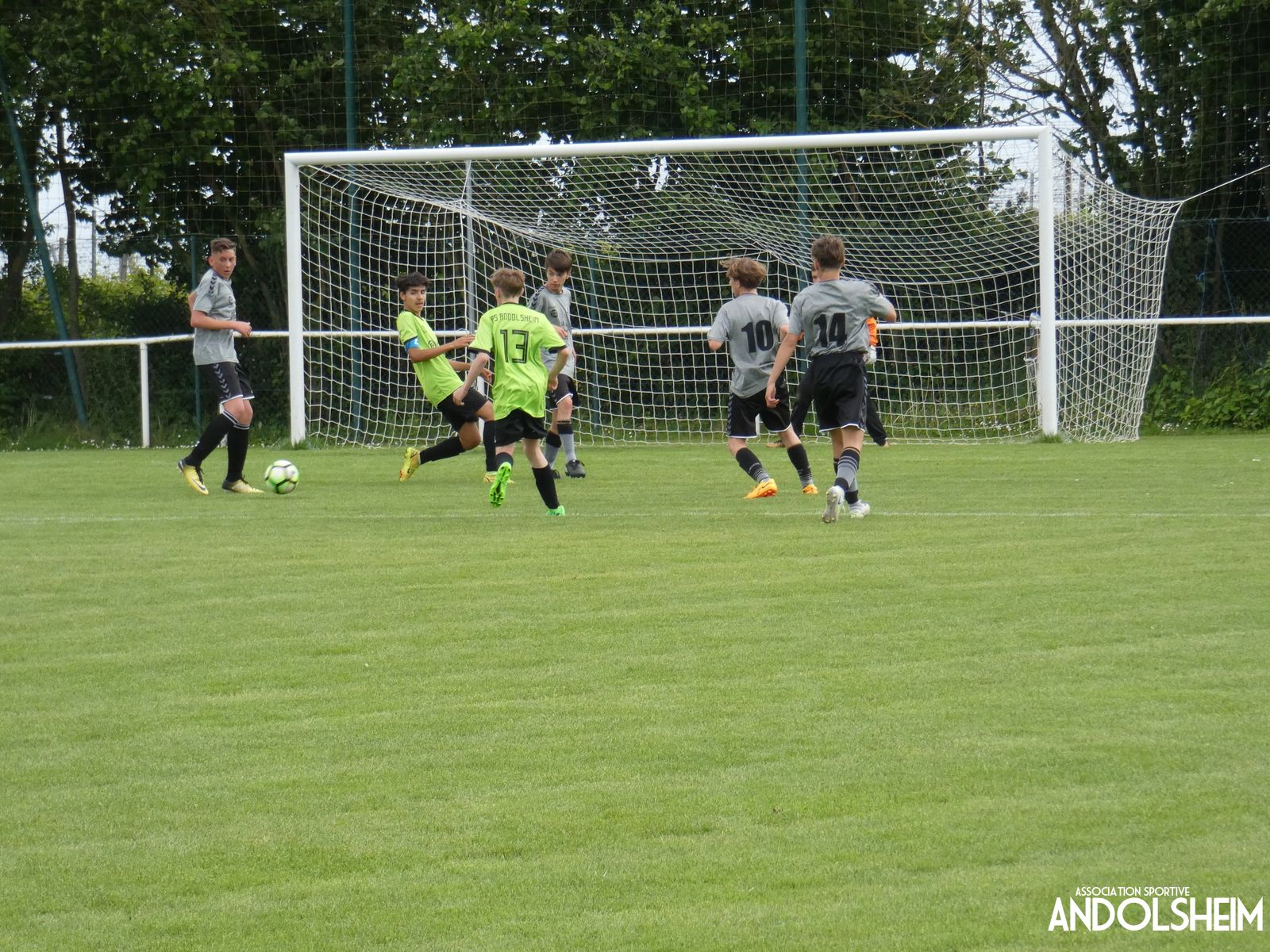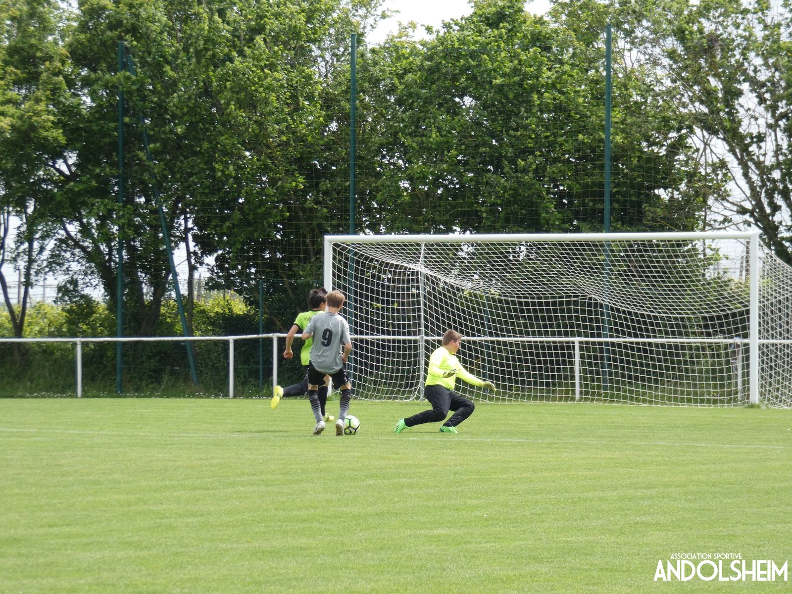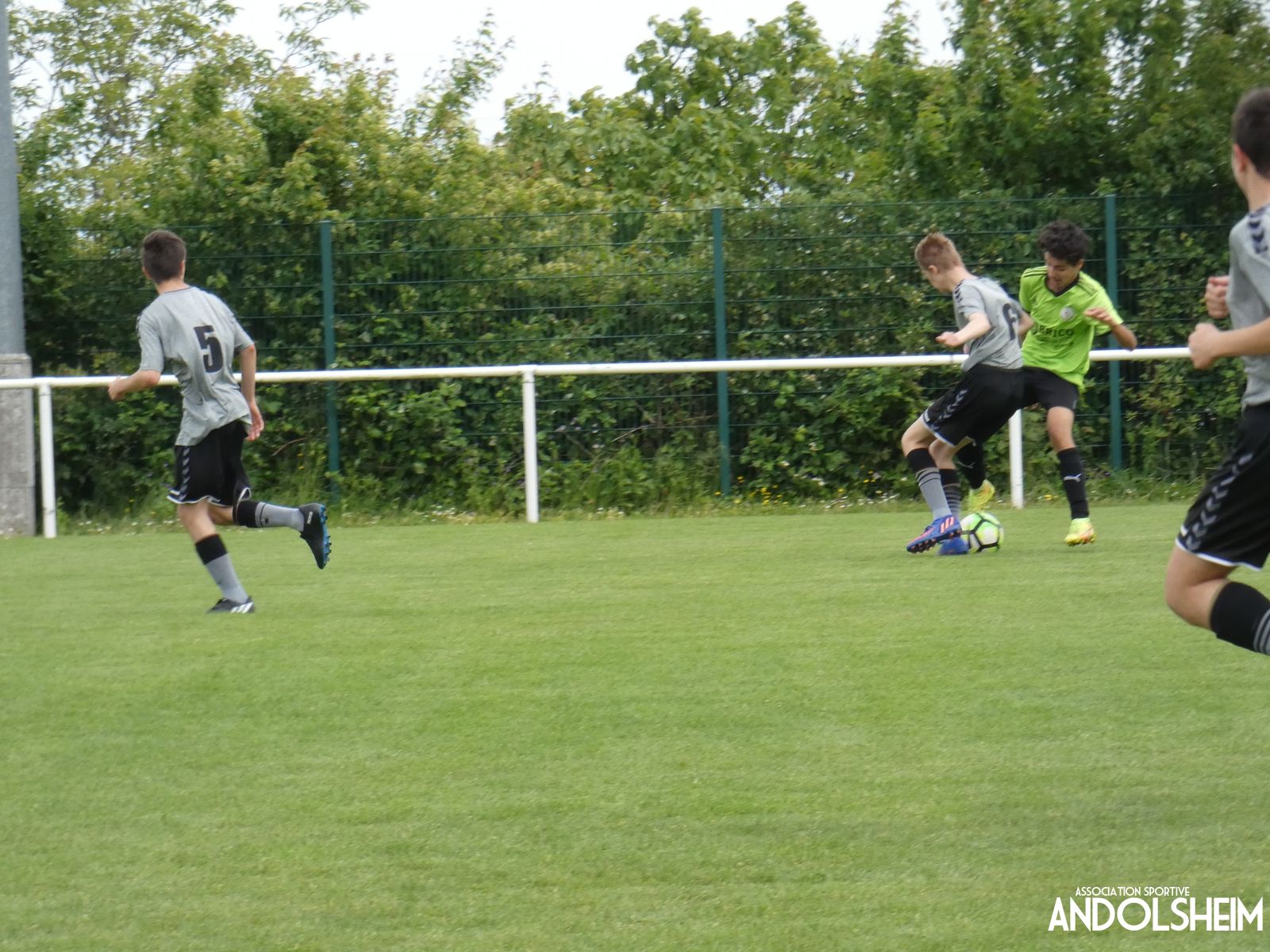 C’est la reprise et comme en début de première période, une nouvelle attaque du n°9 Gris survient mais notre portier accompagné d’Eliott avortent la tentative. L’engagement est là ! Nos « Verts » sentent le soutien et la force des supporters présents le long de la main courante. A la 55ième, Anwar ajuste une belle frappe que le gardien repousse. Anthony, toujours à l’affut finit le travail et s’offre son doublé. 2 à 2, c’est peut-être le retour sur le chemin de la victoire… Dès lors, nos jeunes arrivent à conserver le ballon et s’en suivent un nombre impressionnant d’occasions. Justin nous gratifiera d’une magnifique frappe qui viendra mourir sur la transversale. Adrien tentera également par deux fois de percer les filets sur des frappes des dix-mètres. Nos « Verts » monopolisent la balle en variant le jeu et en proposant des solutions au porteur. Ils osent les frappes au but ; Louis, Eliott et Luca G auront également leur tentative pour le 2-3. Finalement, il nous manquera encore de la justesse pour faire basculer le score. Nos jeunes se sont battus jusqu’au bout sans lâcher et la victoire semblait être méritée. A l’issue de cette rencontre, Thomas, heureux de retrouver de la cohésion dans l’effort, invitera ses joueurs à se regrouper pour scander le cri de la victoire malgré l’égalité du score. Une belle prestation ! Félicitations à Anthony pour son retour gagnant. Bravo les Verts ! Merci au staff de l’US Scherwiller et aux personnels du complexe sportif de Kintzheim présents pour l’accueil. Merci aux fidèles parents supporters pour leurs encouragements à chaque rencontre. Merci aux coachs bénévoles qui donnent de leur temps pour nos jeunes. A très bientôt autour du rectangle vert. Alexis votre reporter