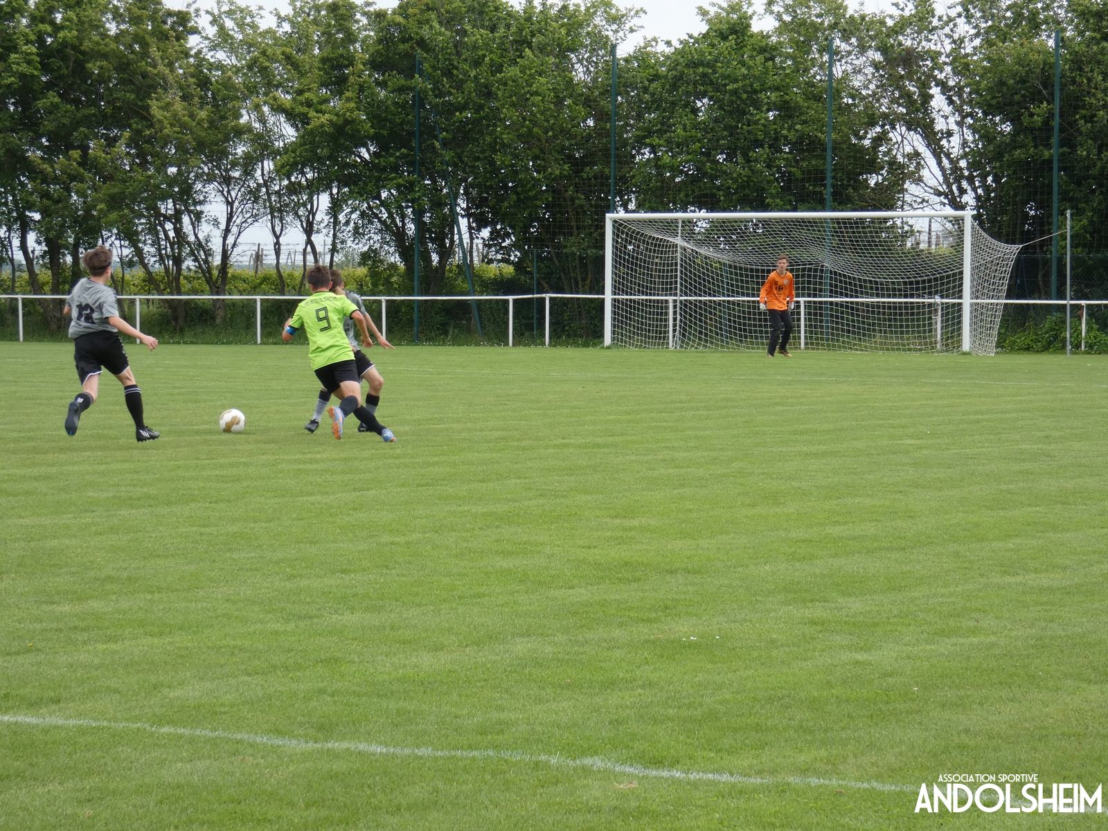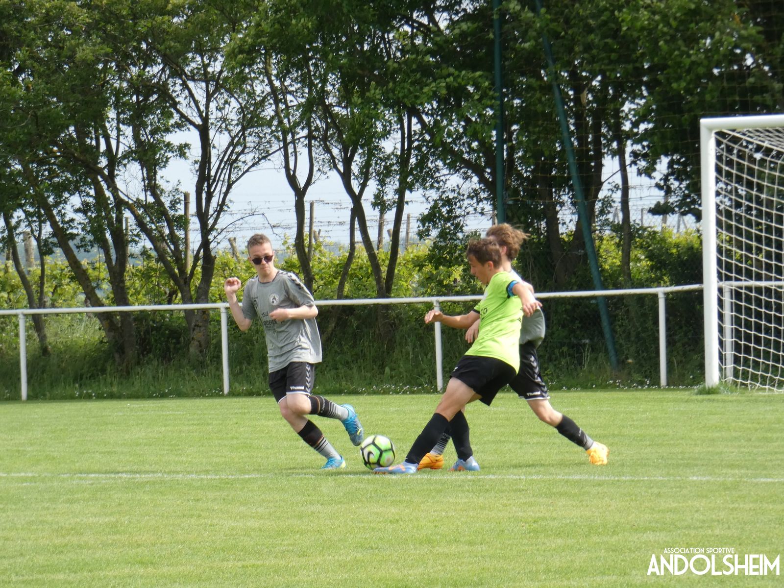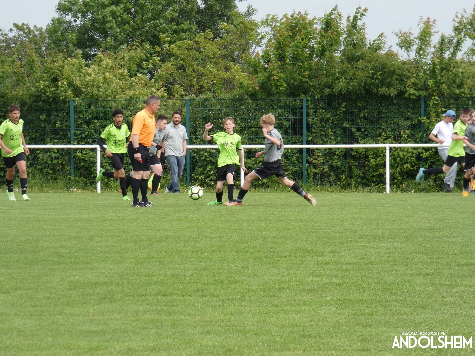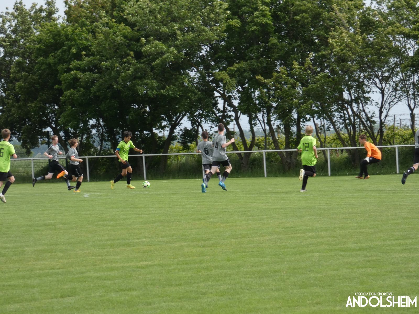 C’est la reprise et comme en début de première période, une nouvelle attaque du n°9 Gris survient mais notre portier accompagné d’Eliott avortent la tentative. L’engagement est là ! Nos « Verts » sentent le soutien et la force des supporters présents le long de la main courante. A la 55ième, Anwar ajuste une belle frappe que le gardien repousse. Anthony, toujours à l’affut finit le travail et s’offre son doublé. 2 à 2, c’est peut-être le retour sur le chemin de la victoire… Dès lors, nos jeunes arrivent à conserver le ballon et s’en suivent un nombre impressionnant d’occasions. Justin nous gratifiera d’une magnifique frappe qui viendra mourir sur la transversale. Adrien tentera également par deux fois de percer les filets sur des frappes des dix-mètres. Nos « Verts » monopolisent la balle en variant le jeu et en proposant des solutions au porteur. Ils osent les frappes au but ; Louis, Eliott et Luca G auront également leur tentative pour le 2-3. Finalement, il nous manquera encore de la justesse pour faire basculer le score. Nos jeunes se sont battus jusqu’au bout sans lâcher et la victoire semblait être méritée. A l’issue de cette rencontre, Thomas, heureux de retrouver de la cohésion dans l’effort, invitera ses joueurs à se regrouper pour scander le cri de la victoire malgré l’égalité du score. Une belle prestation ! Félicitations à Anthony pour son retour gagnant. Bravo les Verts ! Merci au staff de l’US Scherwiller et aux personnels du complexe sportif de Kintzheim présents pour l’accueil. Merci aux fidèles parents supporters pour leurs encouragements à chaque rencontre. Merci aux coachs bénévoles qui donnent de leur temps pour nos jeunes. A très bientôt autour du rectangle vert. Alexis votre reporter