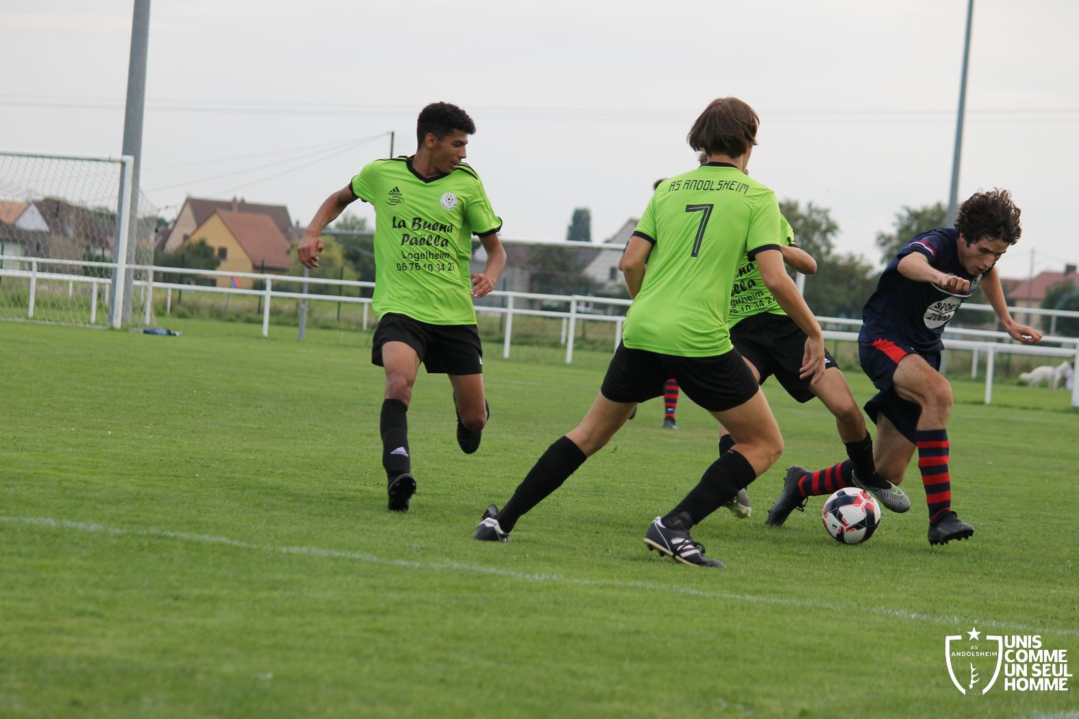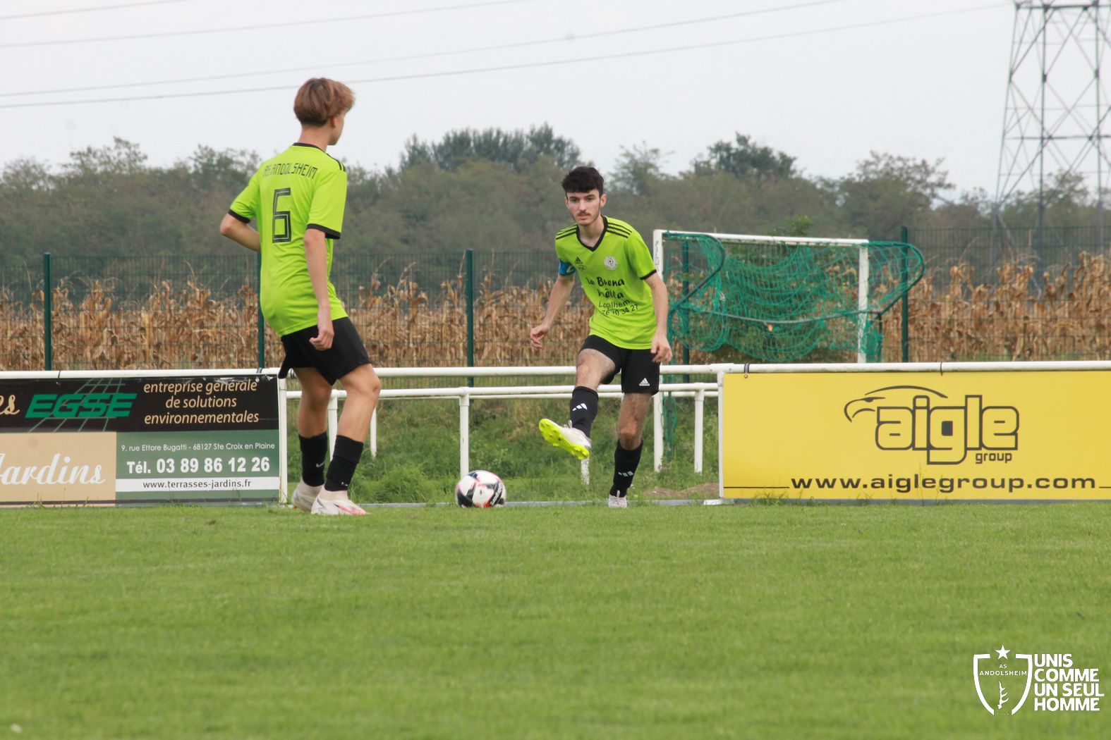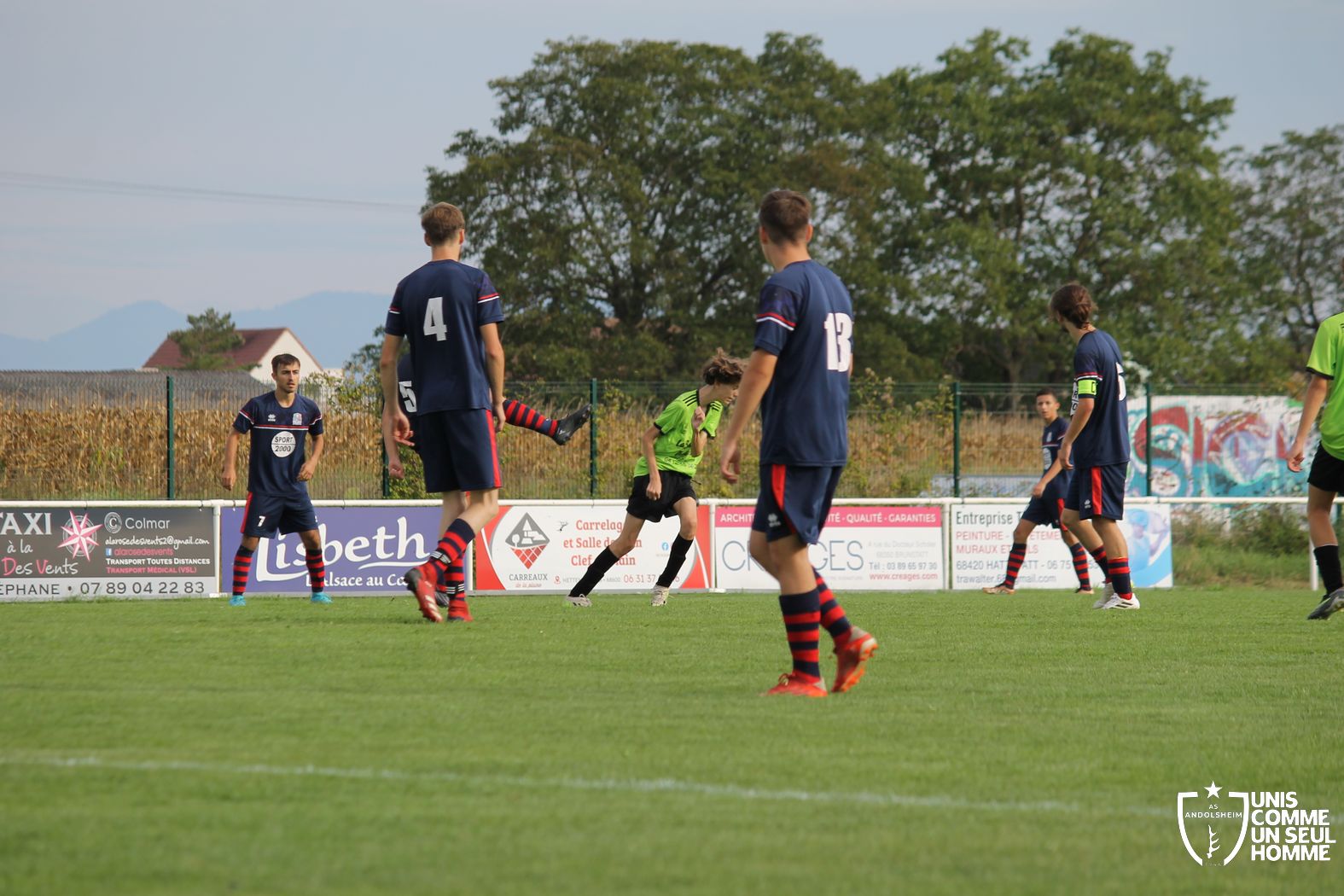 Comme il était prévisible, c’est bien Sainte-Croix-en-Plaine qui domine cette première mi-temps avec plusieurs occasions. Mais nos verts ne se sont pas laissé impressionner. Ils ont eu un esprit combatif, de solidarité et on réussi à contenir les assauts de leurs adversaires. Le pressing des avants et des milieux ont aidé une défense solide qui a fait un bon nombre d'aller-retour pour empêcher que le dernier geste des adversaires fasse mouche.