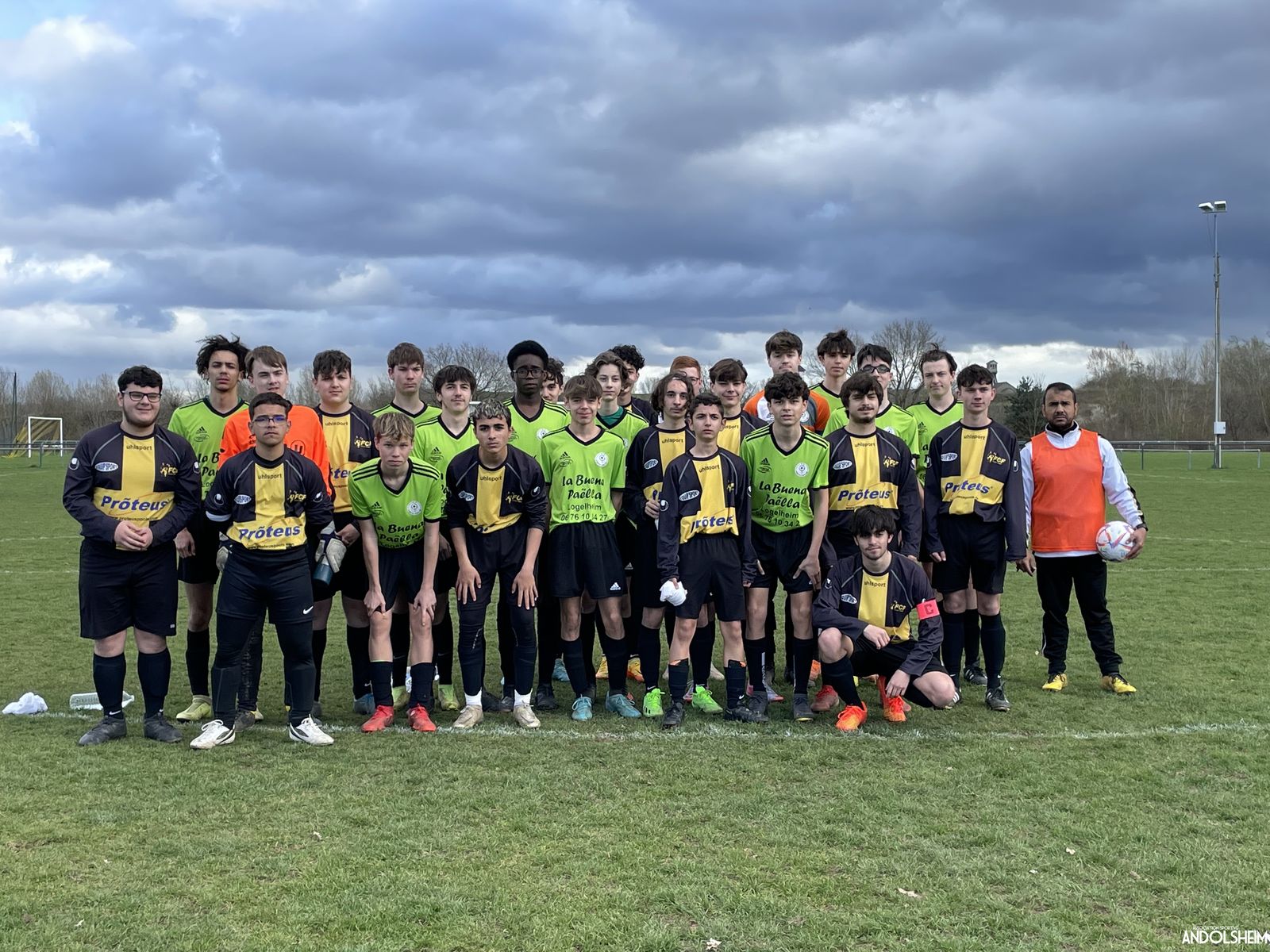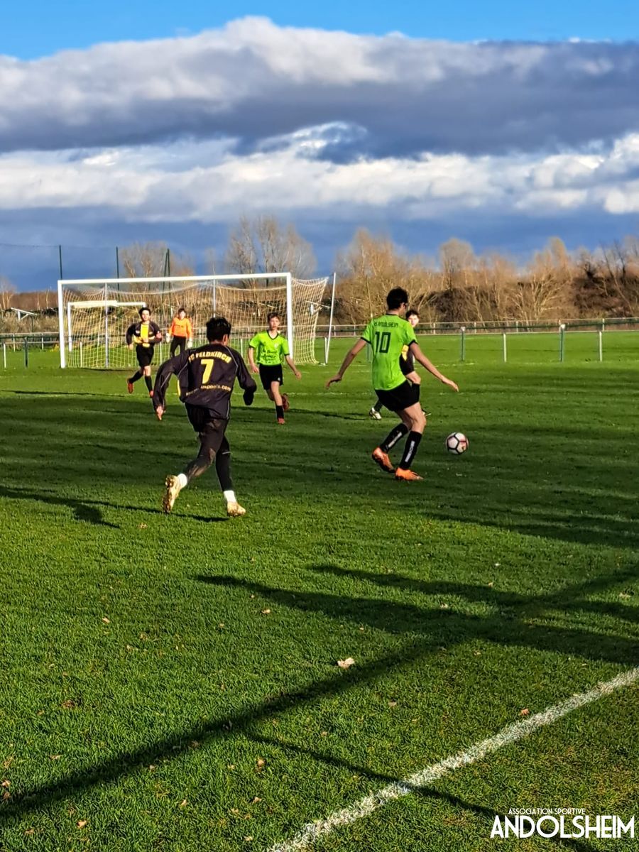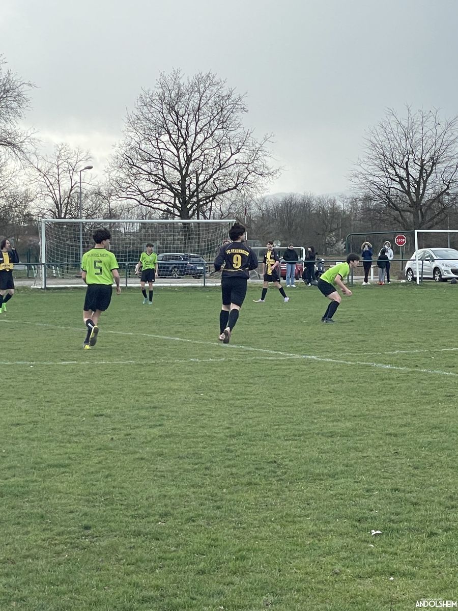Et contre le cours du jeu, on arrive à prendre les devants suite à une belle passe de Nathan pour Kaïs qui perd son duel avec le gardien, mais sous son pressing pousse le défenseur à mal défendre et cela fini en but contre son camp.