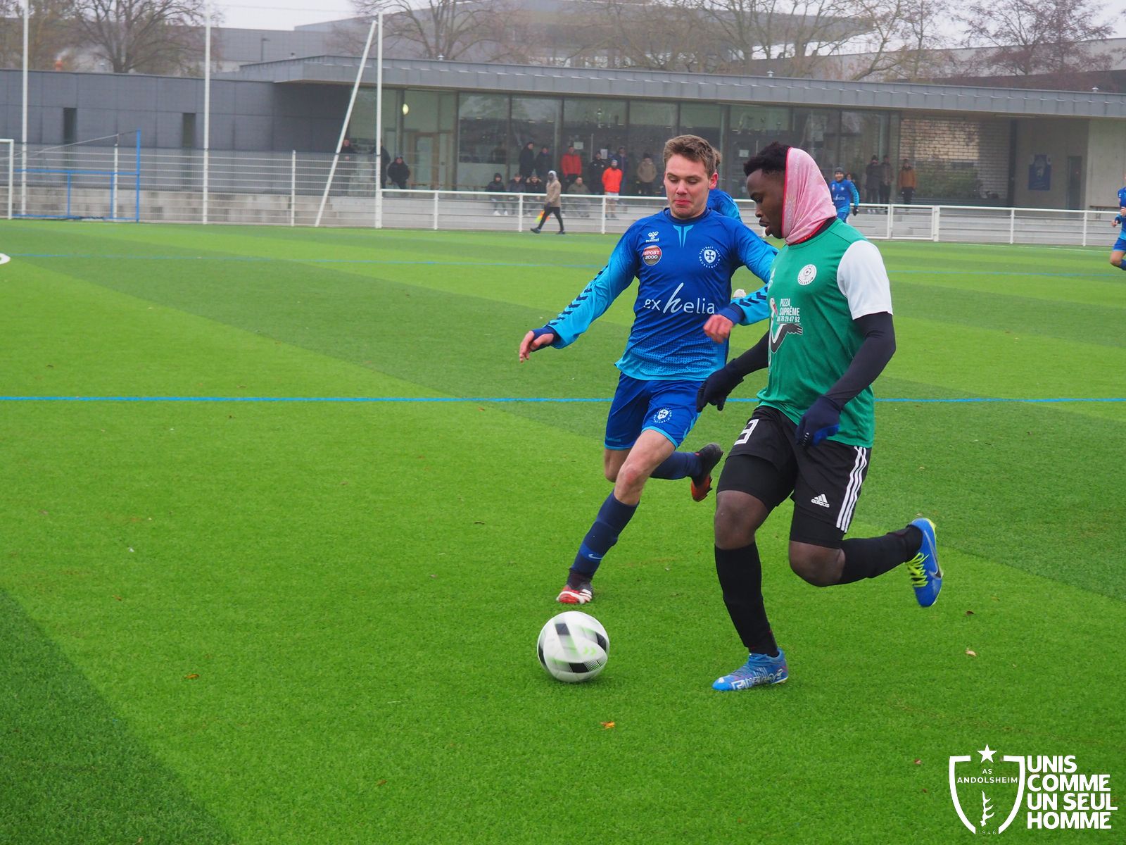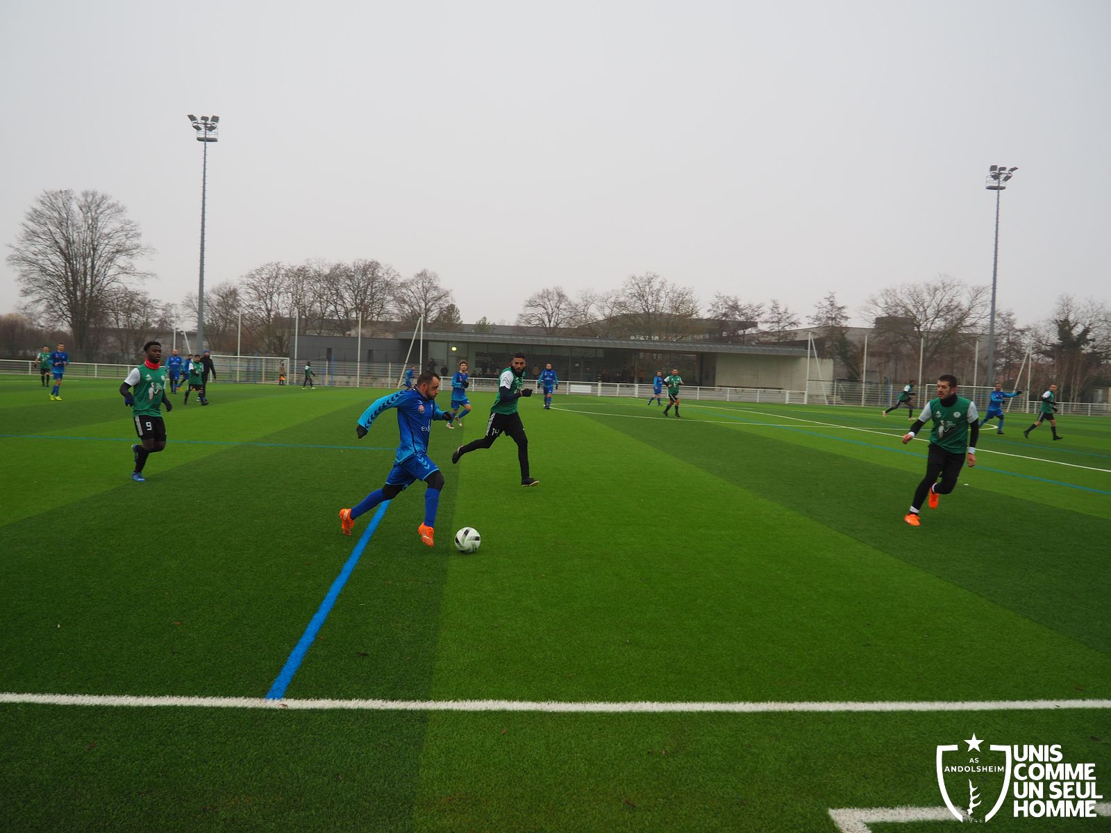 En ce dimanche matin frisquet et brumeux, nos SENIORS 3 se rendent sur le terrain synthétique de Marckolsheim pour visiter l'équipe de Grussenheim. L'AS MARCKOLSHEIM , créé en 1938, fête ses 85 ans et c'est un club très accueillant et chaleureux. Mais le terrain, lui, n'a que 11 mois. Et toute l'Alsace se jette dessus pour pouvoir jouer puisque, comme vous le savez, Chers Lecteurs, quasiment tous les matches de toutes les catégories ont été remis depuis le 11 novembre. C'est d'ailleurs à cette date que j'ai signé mon dernier reportage et on avait joué sous la flotte, dans le froid, dans la nuit, dans la défaite, un film d'horreur...