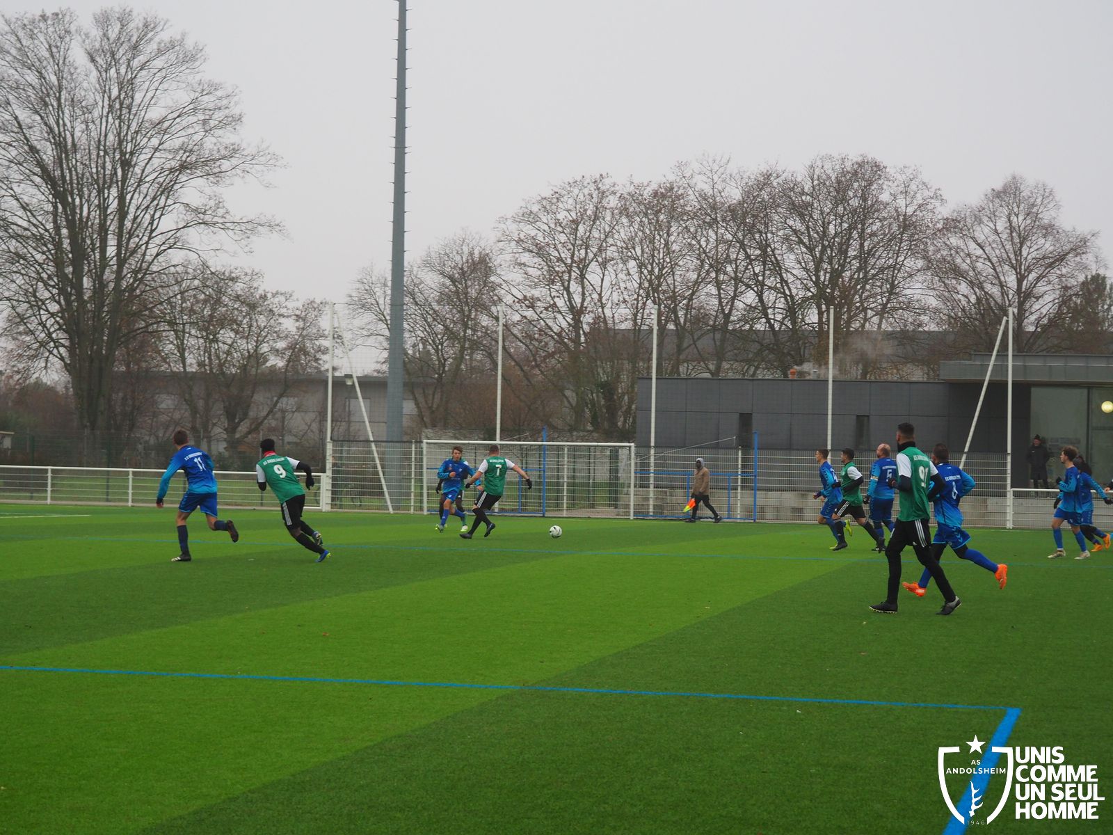 Mais le FC GRUSSENHEIM n'évolue pas en D8 pour rien et mène dès la 12e minute. "Code-fort-taux-mie" comme l'écrivent les journalistes qui veulent éviter la censure. Ce n'est pas grave. Josh égalise magnifiquement en lobant le gardien à la 50e et Walid valide à la 75e : score final 1 - 2. On retiendra que l'ASA, pour gagner ce match, totalise un poteau et 3 transversales... Vous imaginez les 4 traits correspondants ? Vous l'avez ? Ben oui c'est un sapin, de Noel ! Et les deux buts, ce sont les deux boules ! Un mois après le film d'horreur, c'est le comte de Noel ! Vive la 3, vive le groupe seniors, vive l'ASA et joyeux noël à tous !