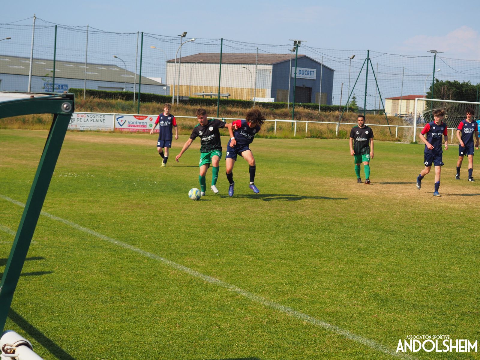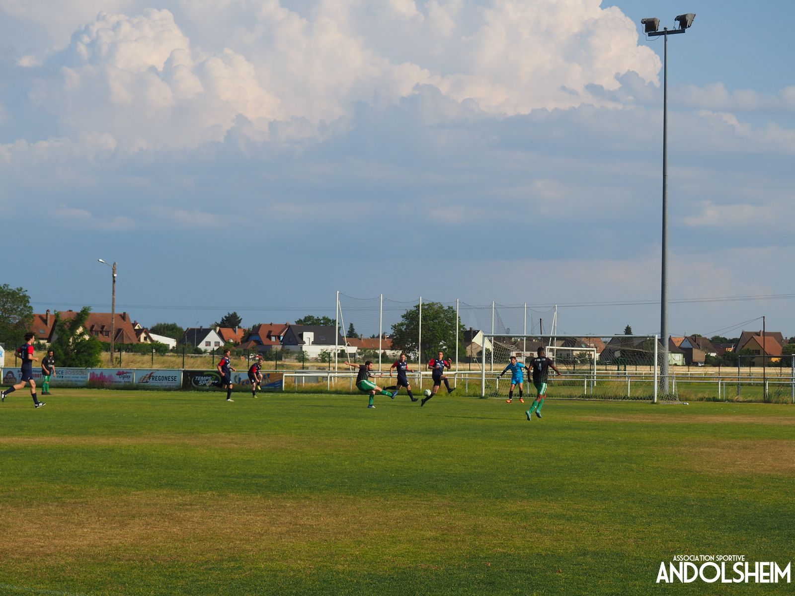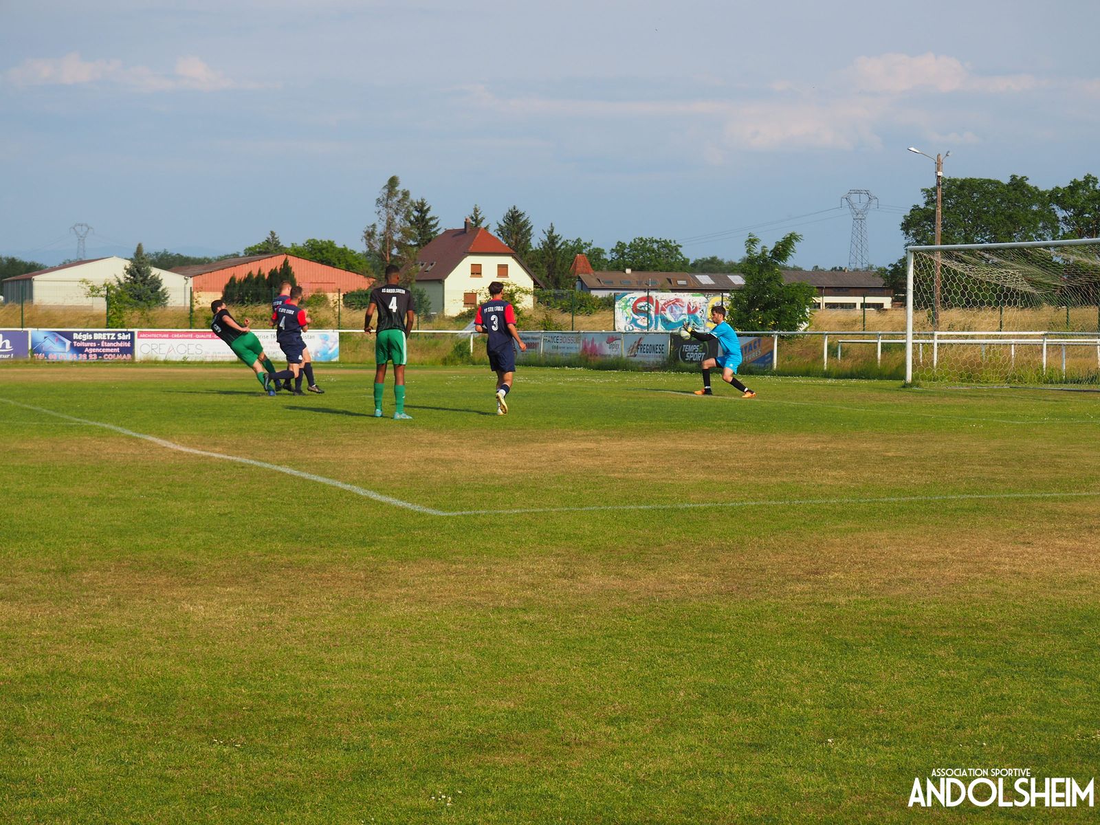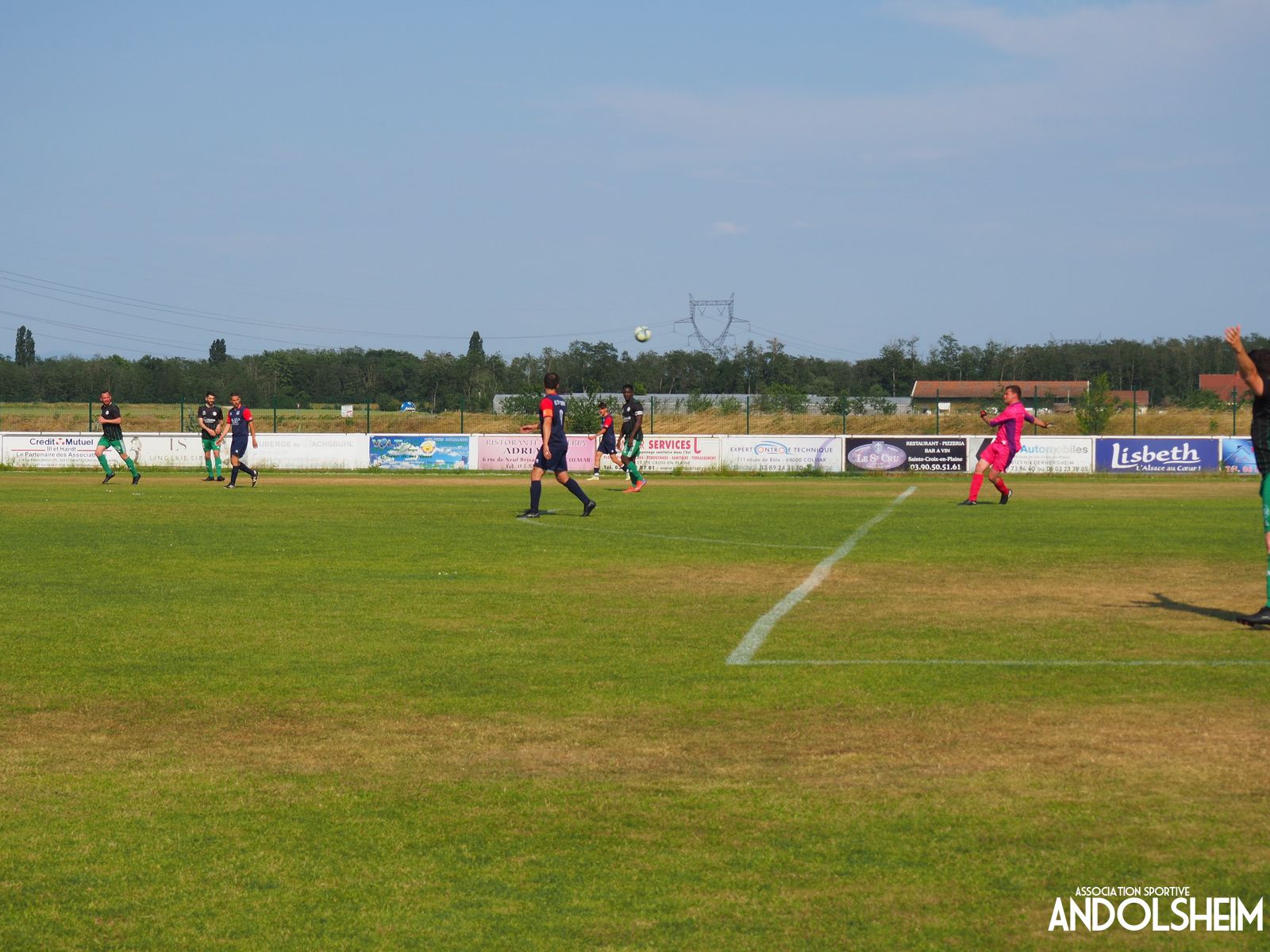 Dès la reprise, les locaux égalisent : deux partout ! À la 55e grosse frayeur, mais Jeff, encore lui, repousse le danger du pied. Deux minutes plus tard, l’ASA prend une seconde biscotte jaune et il y en aura 5 en tout… Bon, les gars, essayez de collectionner les goals, pas les toasts ! Les 2 concepts viennent d’Angleterre, mais on préfère les goals ! À la 65e minute, "Dalep", le dirigeant de la une, qui vient de rentrer sous les clameurs de la foule, lobe et marque : délire total ! L’ASA mène 2 à 3. Mais Andolsheim est incapable de tenir un score en ce dimanche complètement fou : les bleus et rouges égalisent deux minutes plus tard. Tout est à refaire… Dix minutes supplémentaires passent et les locaux marquent contre leur camp en reprenant de volée un centre de Gabin. Merci à nos hôtes ! Mais Monsieur est trop bon : vexés d’avoir marqué contre leur camp, les croisés marquent contre le nôtre 4 minutes plus tard : rira bien qui égalisera le dernier ! Quatre partout, score final, merci à Ste Croix, félicitations à eux, bonne continuation aux deux formations… Et chaleureux remerciements aux bénévoles de Ste Croix en Plaine, pour leur accueil et leur gentillesse en 3e mi-temps.
