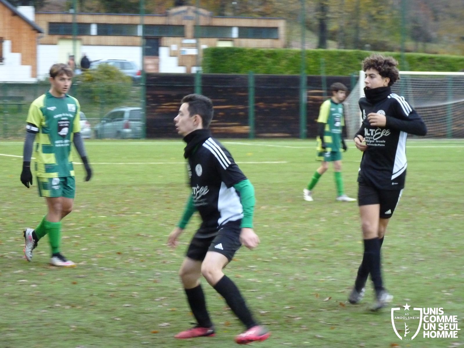 Le match s'est déroulé sous une météo fraîche et pluvieuse, nos verts vêtus de noir pour ce match avait un adversaire beaucoup plus agressif dans le jeu, une équipe qui voulait gagner à tout prix.
