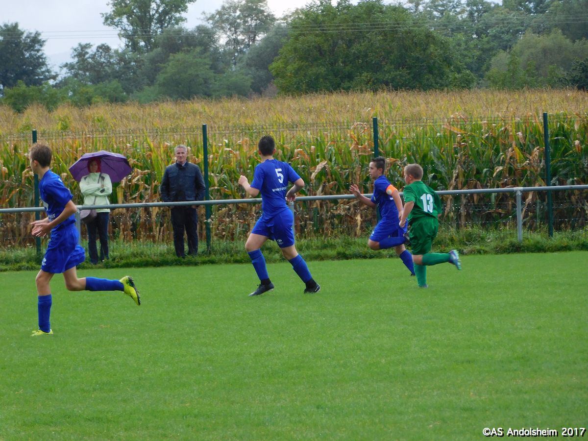 Au retour des vestiaires, les nombreux spectateurs, venus encourager les 2 équipes, continuent à assister à un beau match, malgré la pluie incessante qui commence à gêner les joueurs. L'ASA semble prendre le dessus, mais est surprise par un ballon par dessus sa défense, bien exploité une nouvelle fois par les visiteurs. Quelle efficacité! A 1-3, on pense le match plié. Mais les bleus ont de la ressource et sur un ballon en profondeur, remisé par Logan, Maxime réussit à passer quatre défenseurs pour aller crucifier le gardien. Ce but redonne de l'espoir à ses partenaires et aux spectateurs. Les vagues bleues se succèdent. Turckheim a du répondant, mais notre défense tient le choc. Sur une dernière percée, Maxime vient buter sur le cerbère des verts, qui effectue une très belle sortie et empêche l'ASA d'égaliser. Le score final en restera à 2-3 pour les visiteurs du jour.