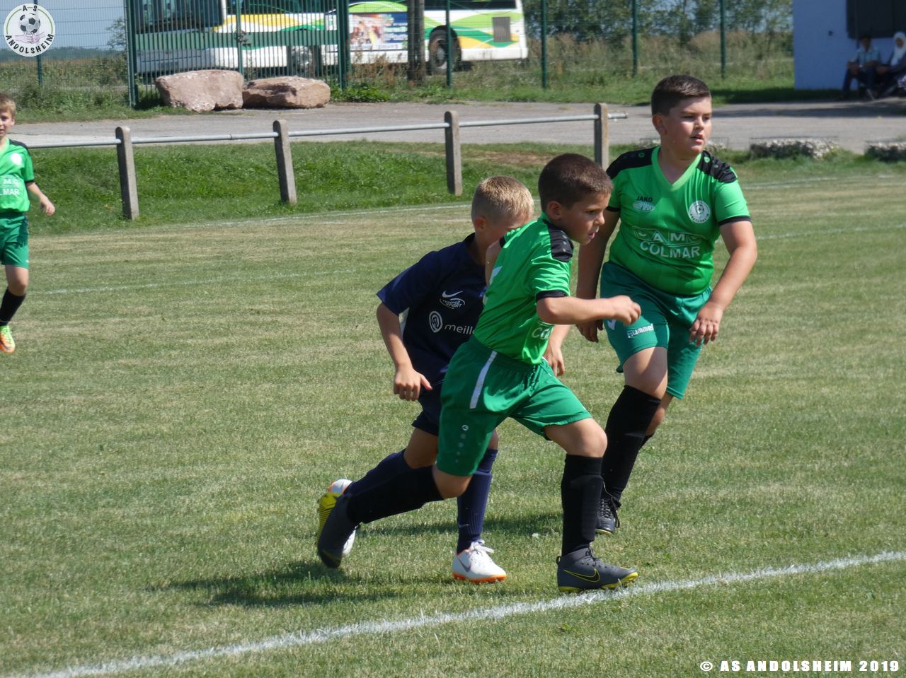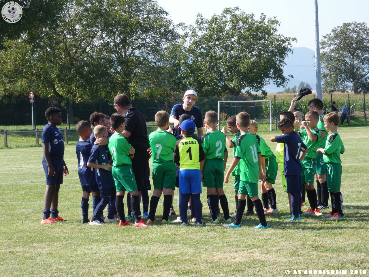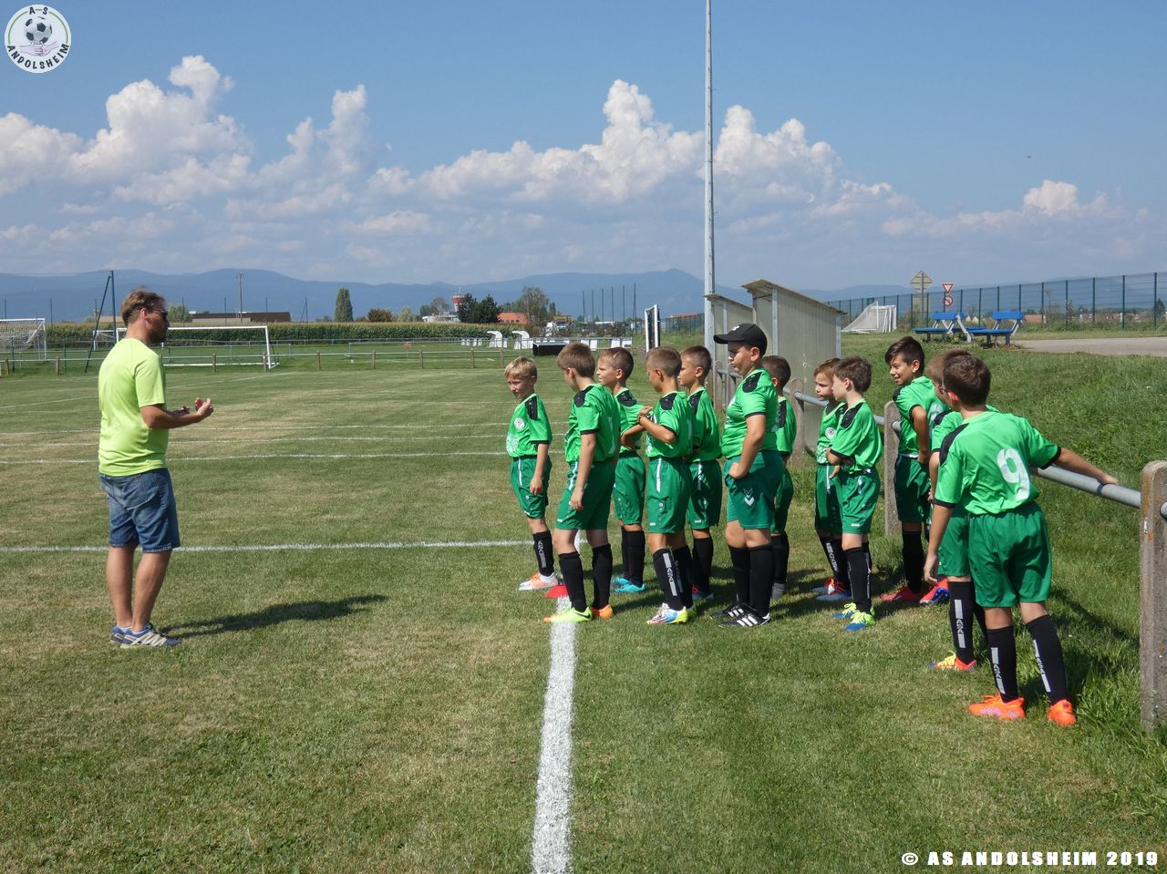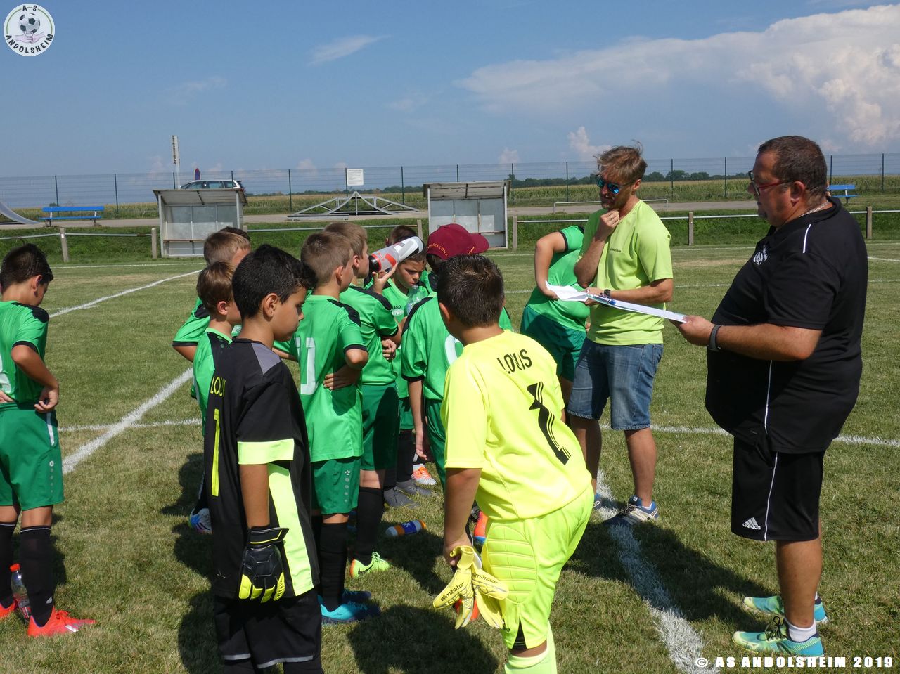 Sous la direction de Marc et Gérard, nos jeunes entament une séance d’échauffement, c’est l’occasion pour nos Verts de se retrouver après une longue période de vacances dans les conditions d’un match officiel. Les coachs ont prévus quatre temps de jeu pour cette rencontre. Les temps de repos ont été les bienvenus en cette journée très chaude et ensoleillée.
