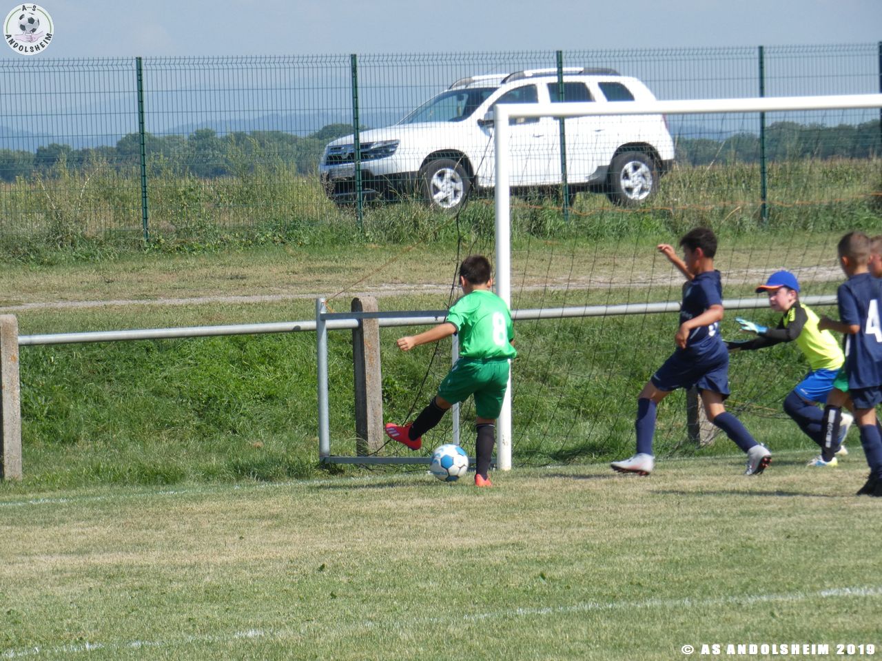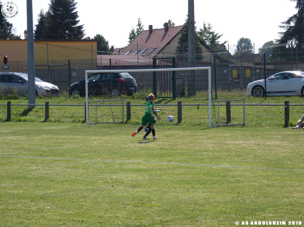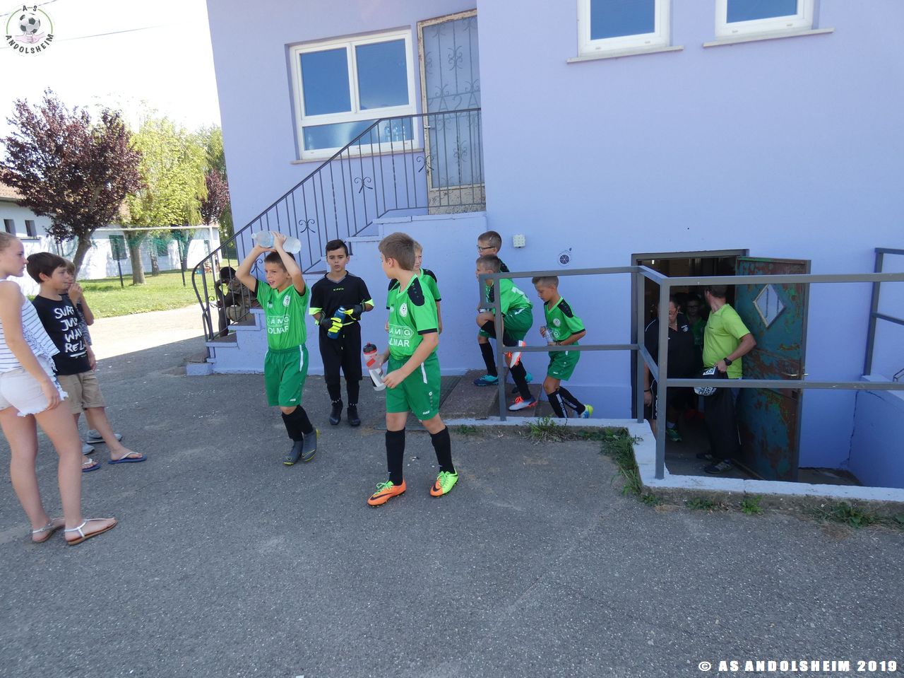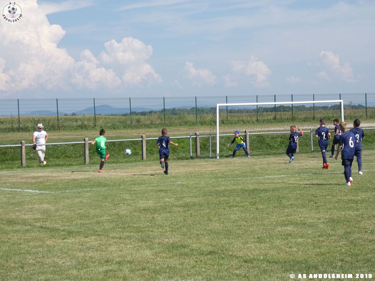 Sous la direction de Marc et Gérard, nos jeunes entament une séance d’échauffement, c’est l’occasion pour nos Verts de se retrouver après une longue période de vacances dans les conditions d’un match officiel. Les coachs ont prévus quatre temps de jeu pour cette rencontre. Les temps de repos ont été les bienvenus en cette journée très chaude et ensoleillée.