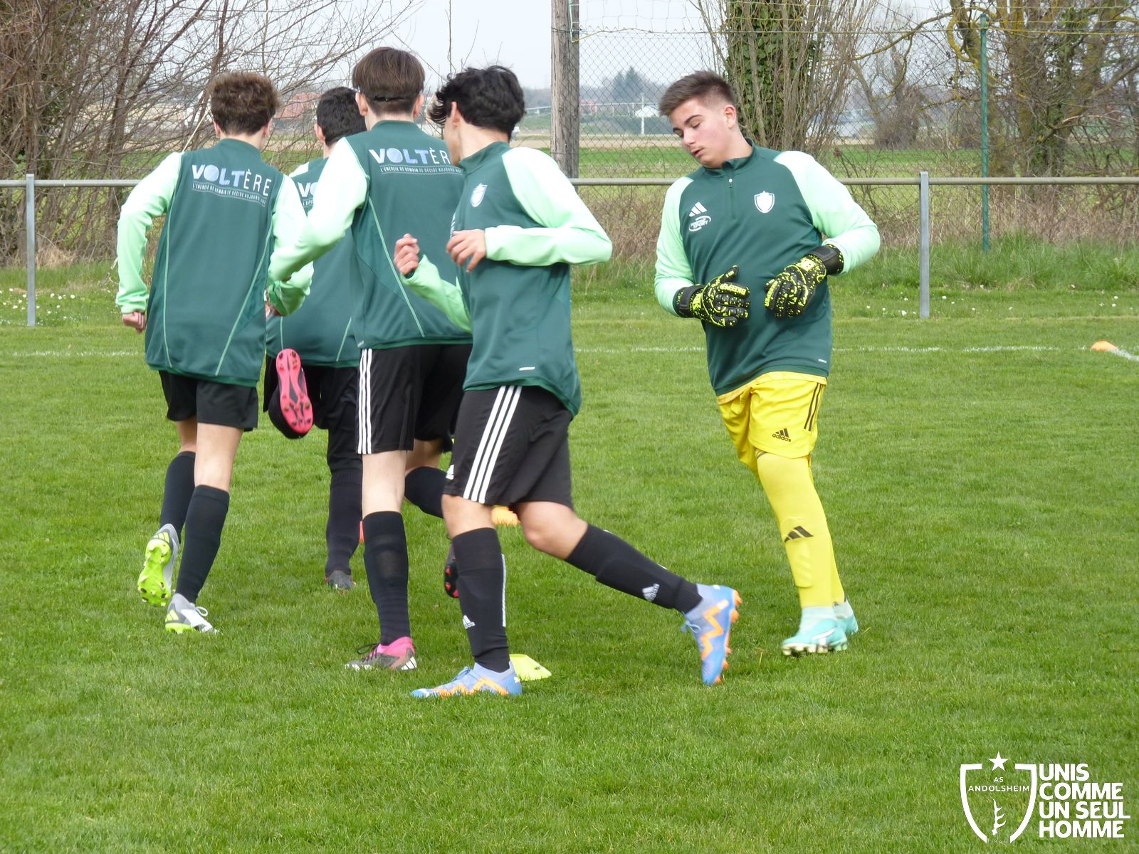 Pour la reprise nos U15 ce sont déplacés sur le terrain de Raedersheim EMR sous un beau soleil printanier.