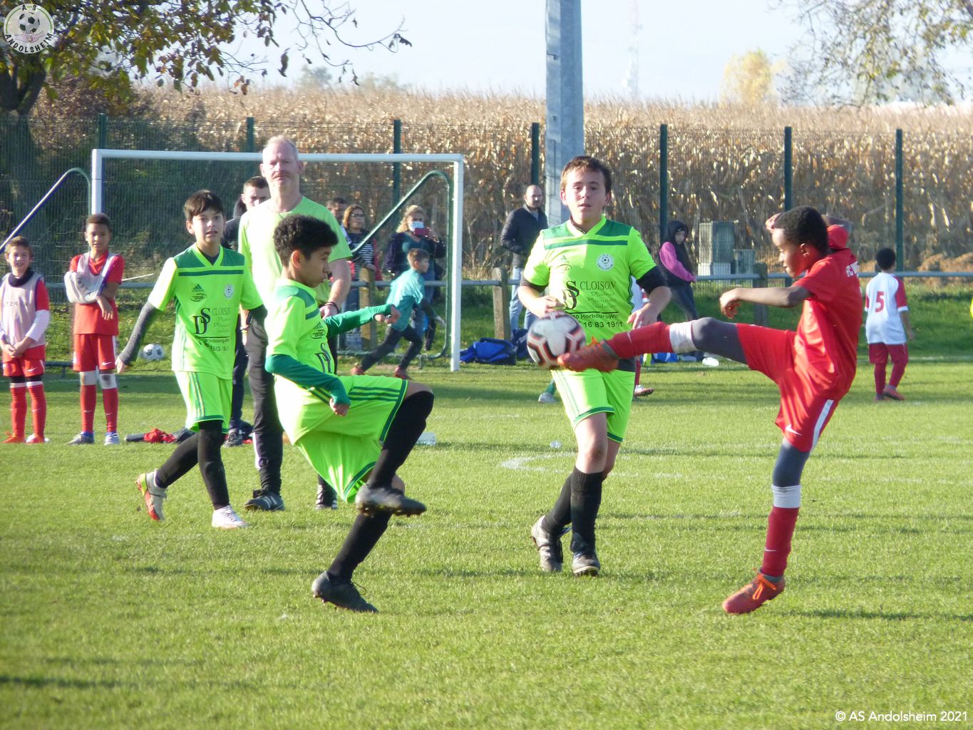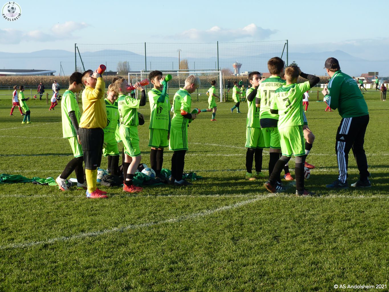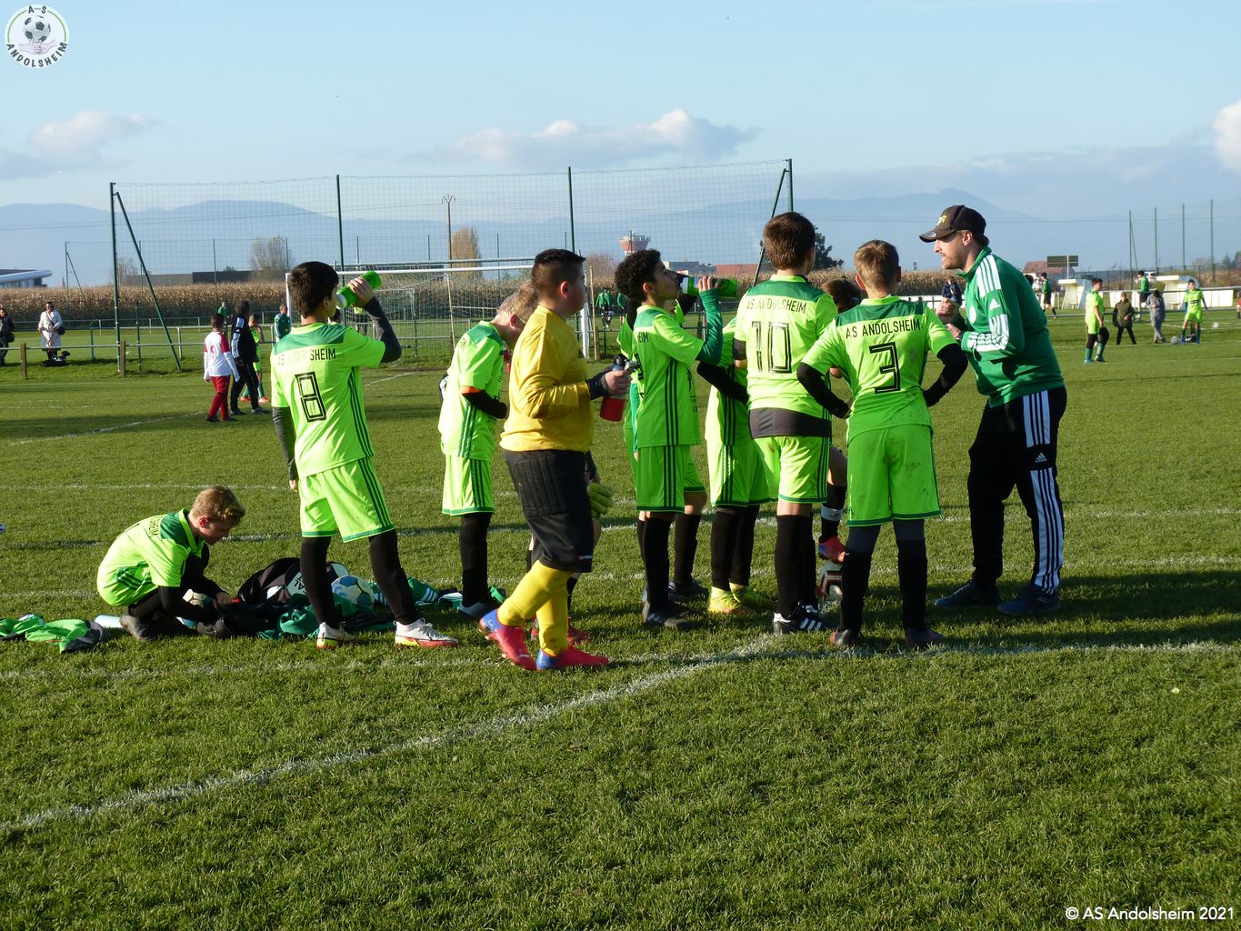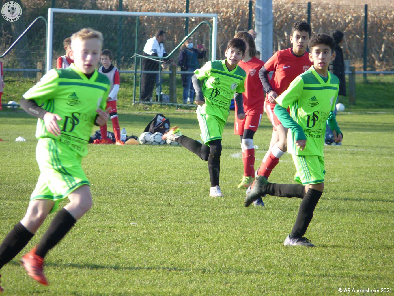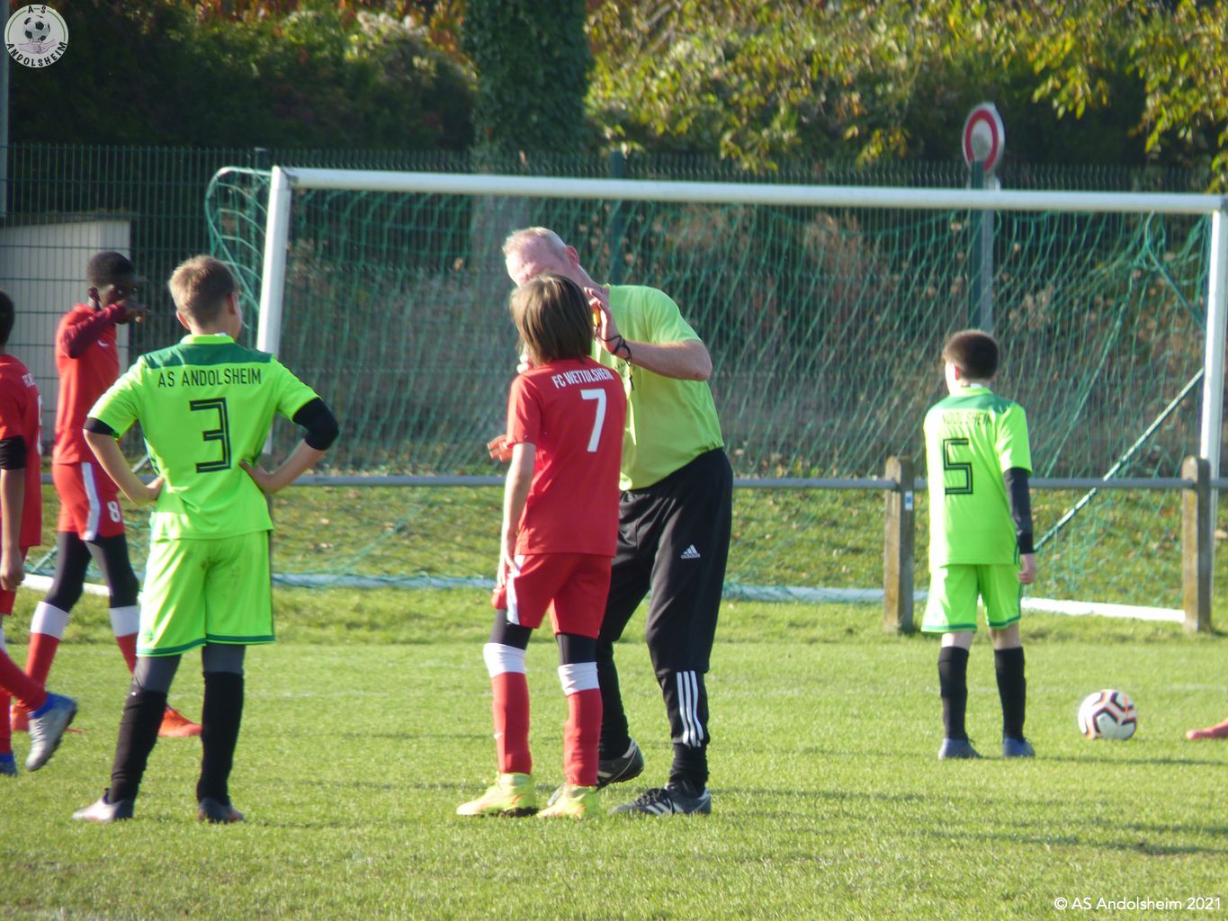 Nos U13/1 ont accueilli le FC Wettolsheim pour le match de championnat retour. Pendant que le coach Marc donnait les consignes aux joueurs dans le vestiaire, son binôme Gérard a procédé aux contrôles du pass sanitaire. Il est certain que c'est une contrainte, certains éducateurs des équipes adverses sont contre le contrôle, mais à l'ASA ont respecte les obligations mises en place. Ce sont les conditions pour s'en sortir et pouvoir continuer à jouer au football. Le match s'est déroulé sur un rythme assez élevé, nos verts ont appliqué les consignes données par les coachs. Il y avait de très belles actions offensives et collectives, malheureusement nos attaquants, ont été un peu maladroits, devant le but adverse. A noter également un très bon repli défensif de l'ASA, notre portier Louis a réalisé de très beaux arrêts et sorties, cela rassure une équipe, malgré quelques frayeurs par moment ! Nos verts l'ont emporté sur le score de 4 - 2. Nous constatons que les séances d'entraînements commencent à payer, les joueurs se comprennent et se retrouvent bien sur le terrain. A la fin de la rencontre, plusieurs parents ont félicité Laurent, Marc et Gérard pour leur dévouement et qu'il prenaient plaisir à encourager le samedi. Effectivement, vous venez en nombres supporter les verts, pour les joueurs c'est une grande motivation. L'arbitre centrale du jour, un jeune vétéran, Hervé Diebold qui a été parfait. Un grand merci à notre partenaire La Pommeraie à Sigolsheim qui nous offre les pommes pour le goûter des joueurs. Allez les verts... Allez l'ASA! Crédit photos et texte: Lidia