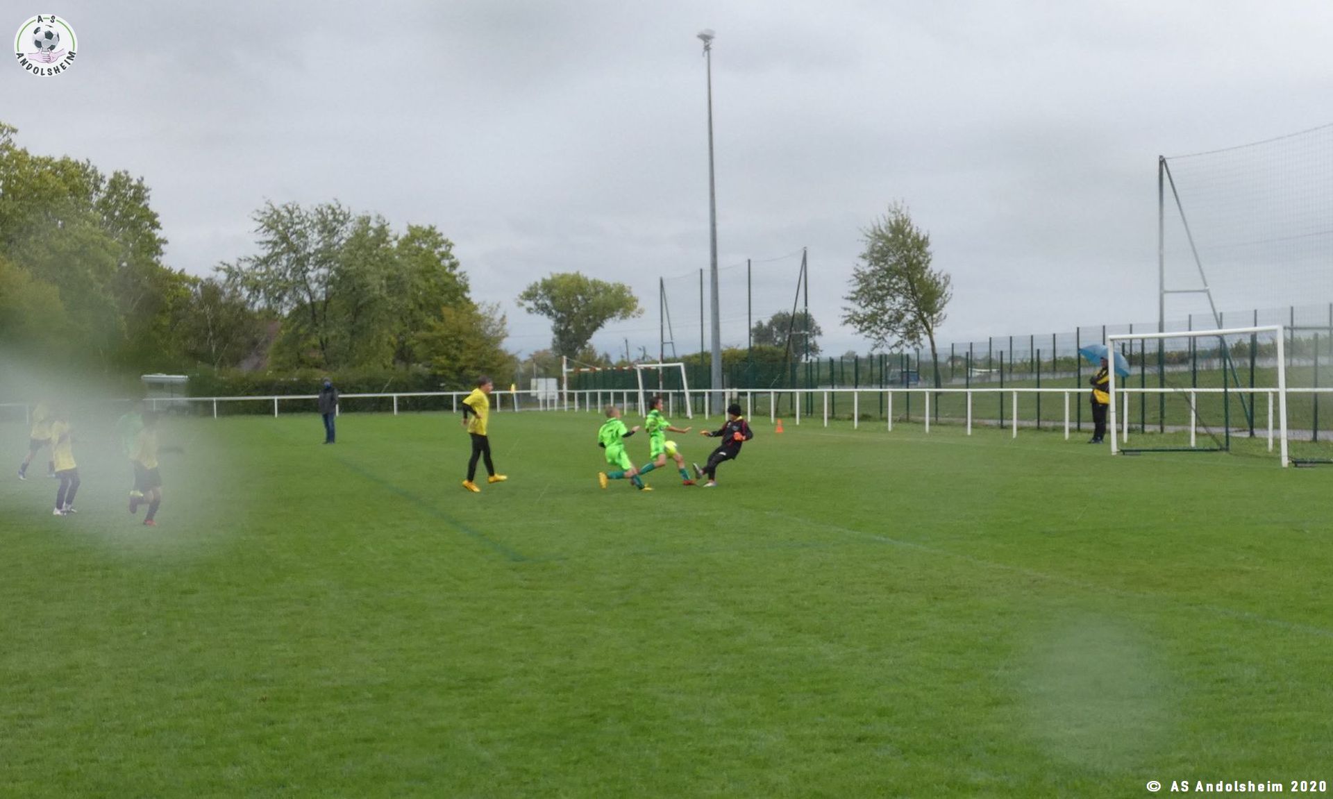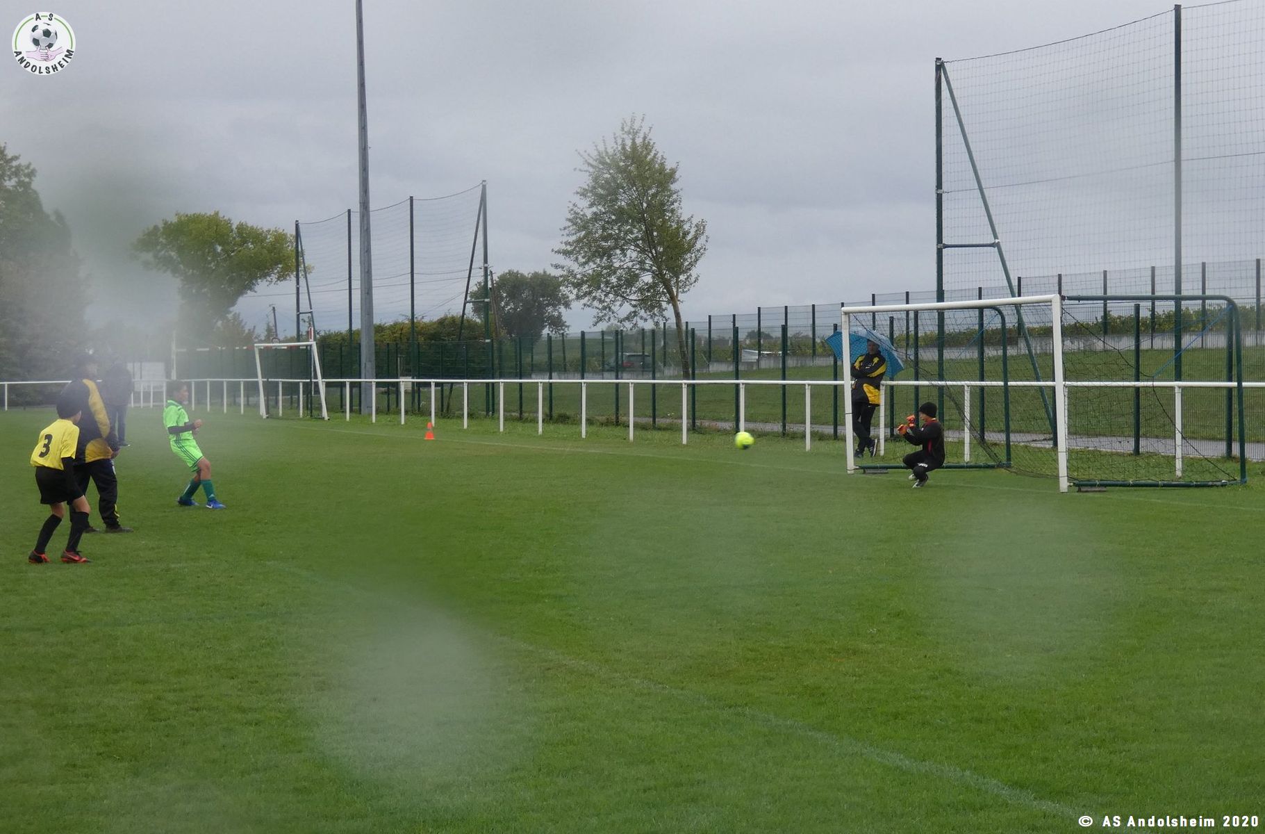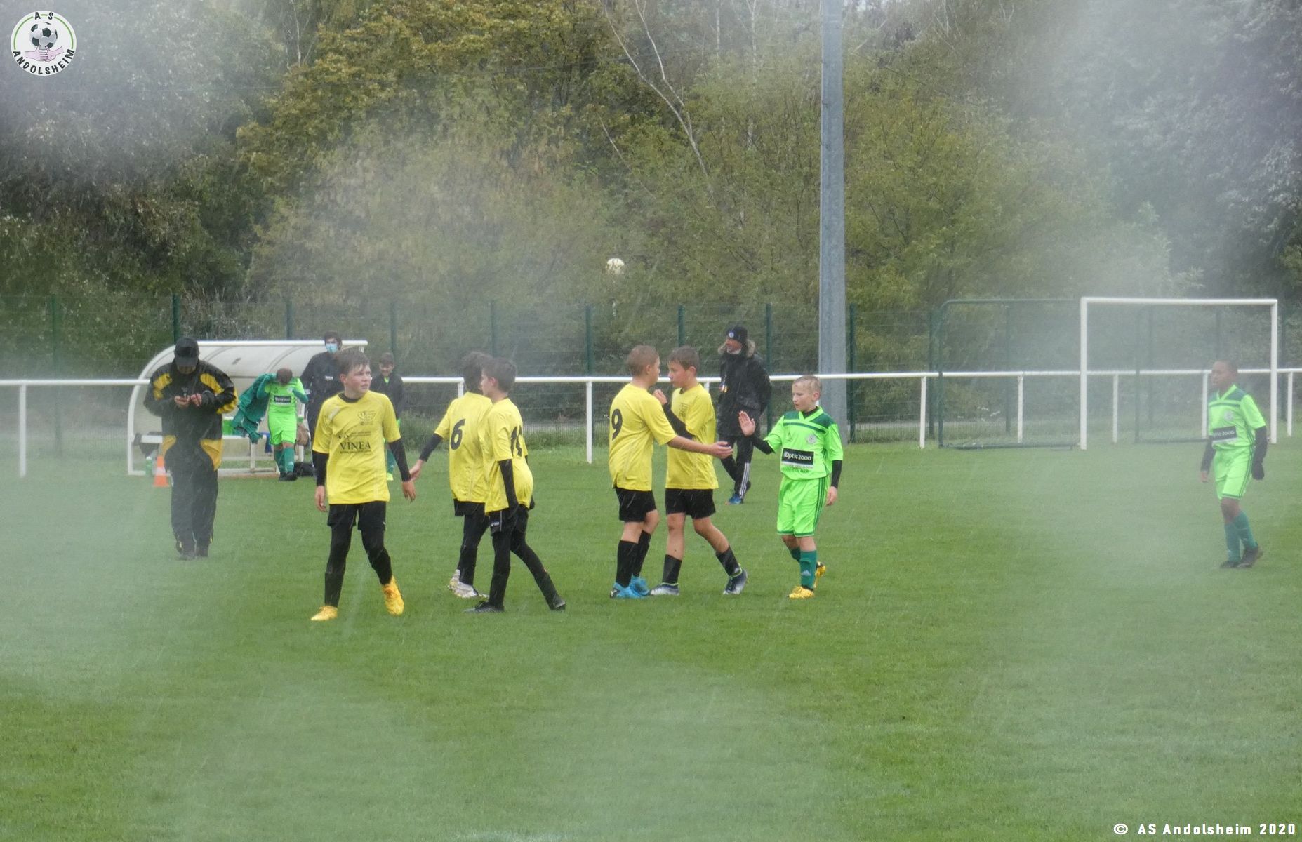 Reprise rapide sifflée par l’arbitre car la pluie et le vent redoublaient.