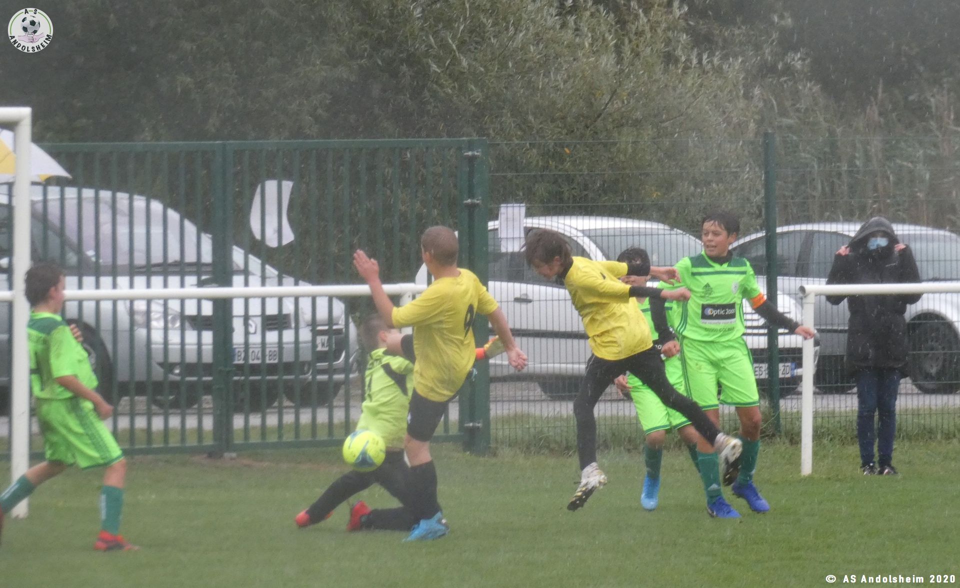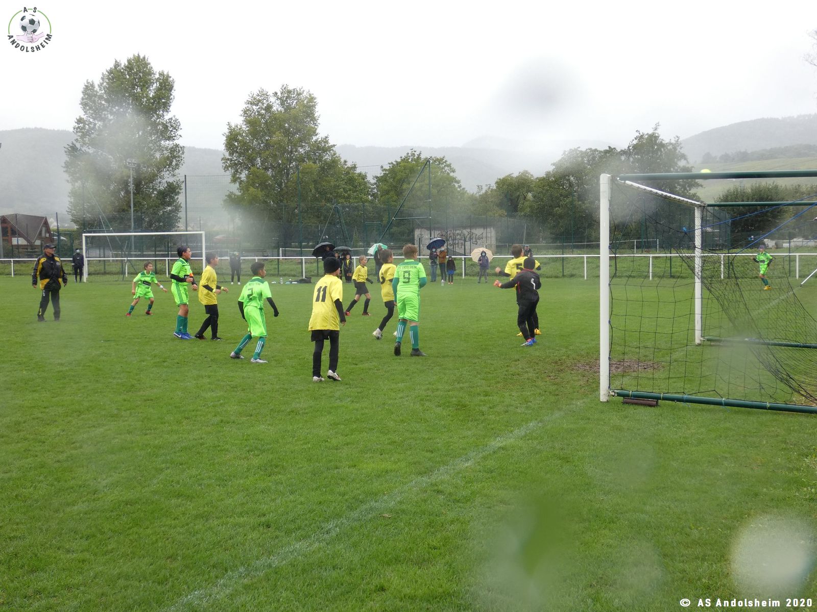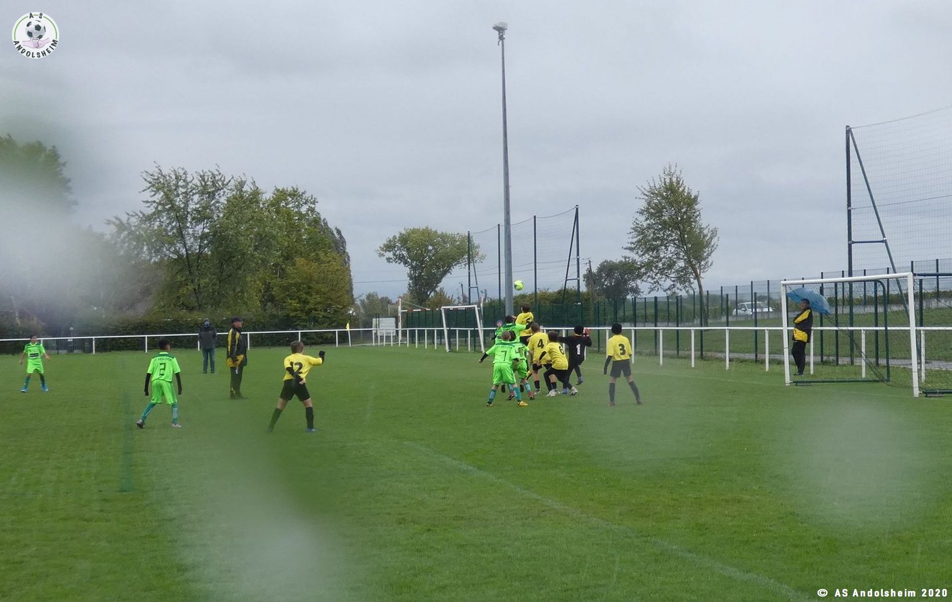 Reprise rapide sifflée par l’arbitre car la pluie et le vent redoublaient.